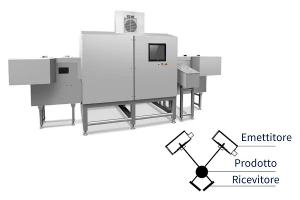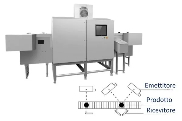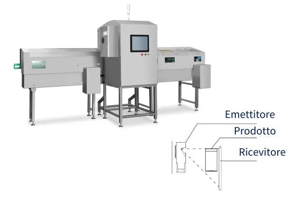 Questo sistema risulta particolarmente efficace per l’individuazione di vetro nei contenitori di vetro o di frammenti metallici nelle lattine, oltre che per il controllo del livello di riempimento del prodotto e difetti del contenitore.