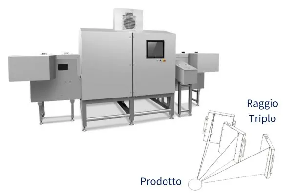 Grazie all’impiego di tre fasci, il sistema garantisce un’analisi estremamente accurata, riducendo al minimo la possibilità di angoli ciechi e assicurando una rilevazione efficace anche dei contaminanti più piccoli. Questa configurazione è ideale per individuare corpi estranei anche nelle aree più critiche, dove altri sistemi potrebbero non essere altrettanto affidabili.
